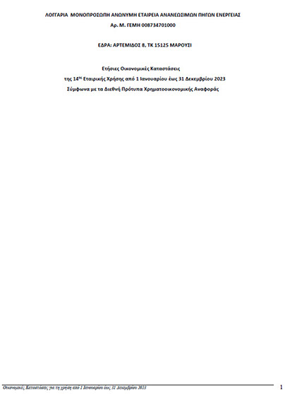 ΛΟΓΓΑΡΙΑ ΜΟΝΟΠΡΟΣΩΠΗ ΑΝΩΝΥΜΗ ΕΤΑΙΡΕΙΑ ΑΝΑΝΕΩΣΙΜΩΝ ΠΗΓΩΝ ΕΝΕΡΓΕΙΑΣ